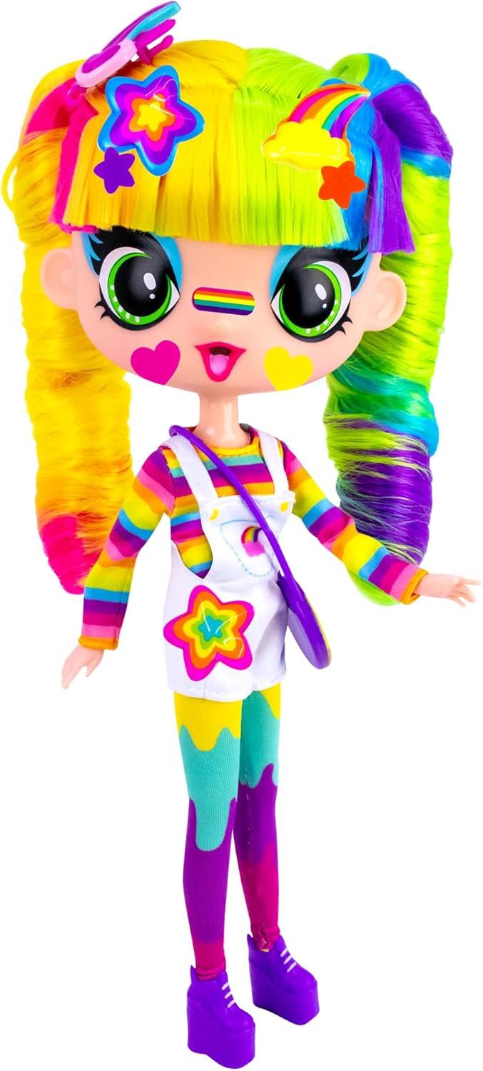 Extra-Long Rainbow Hair – Her fully rooted, soft rainbow pigtails are perfect for twisting, braiding, and styling, letting kids create endless fun looks.